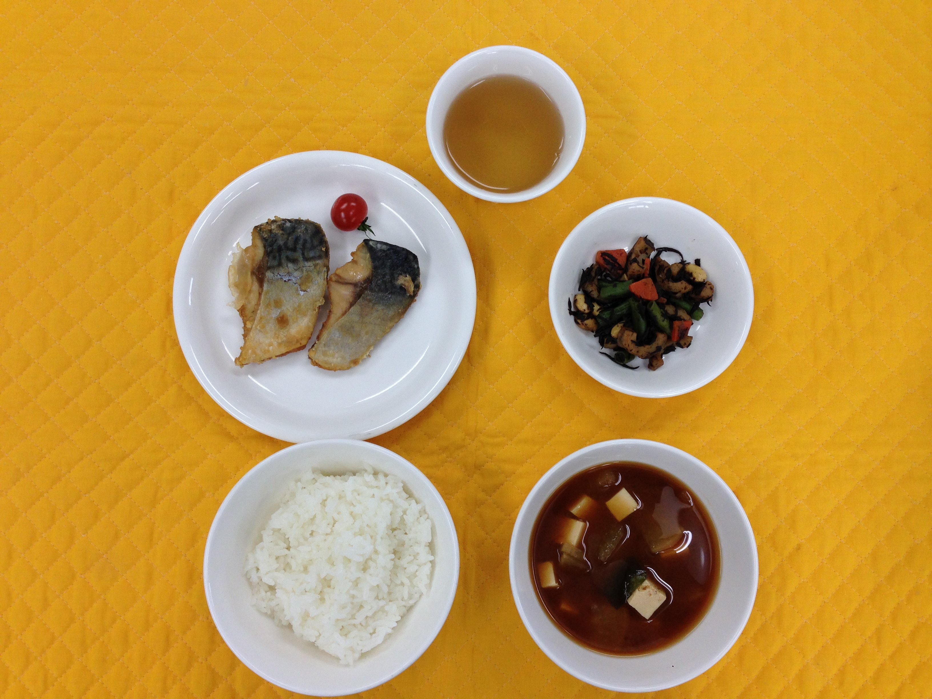 今日の給食は、さばの竜田揚げとひじき煮です。ひじき煮には、ひじき・大豆・人参・インゲン・ちくわが入って栄養たっぷりのメニューになっています。 |