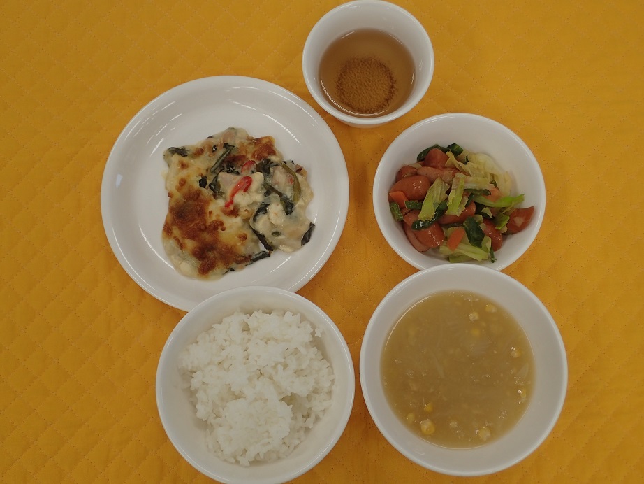 タンパク質たっぷりの豆腐グラタンを作ってみました。 豆腐の形を出来るだけくずさずほうれん草、シメジを加えホワイトソースで味付けしました。