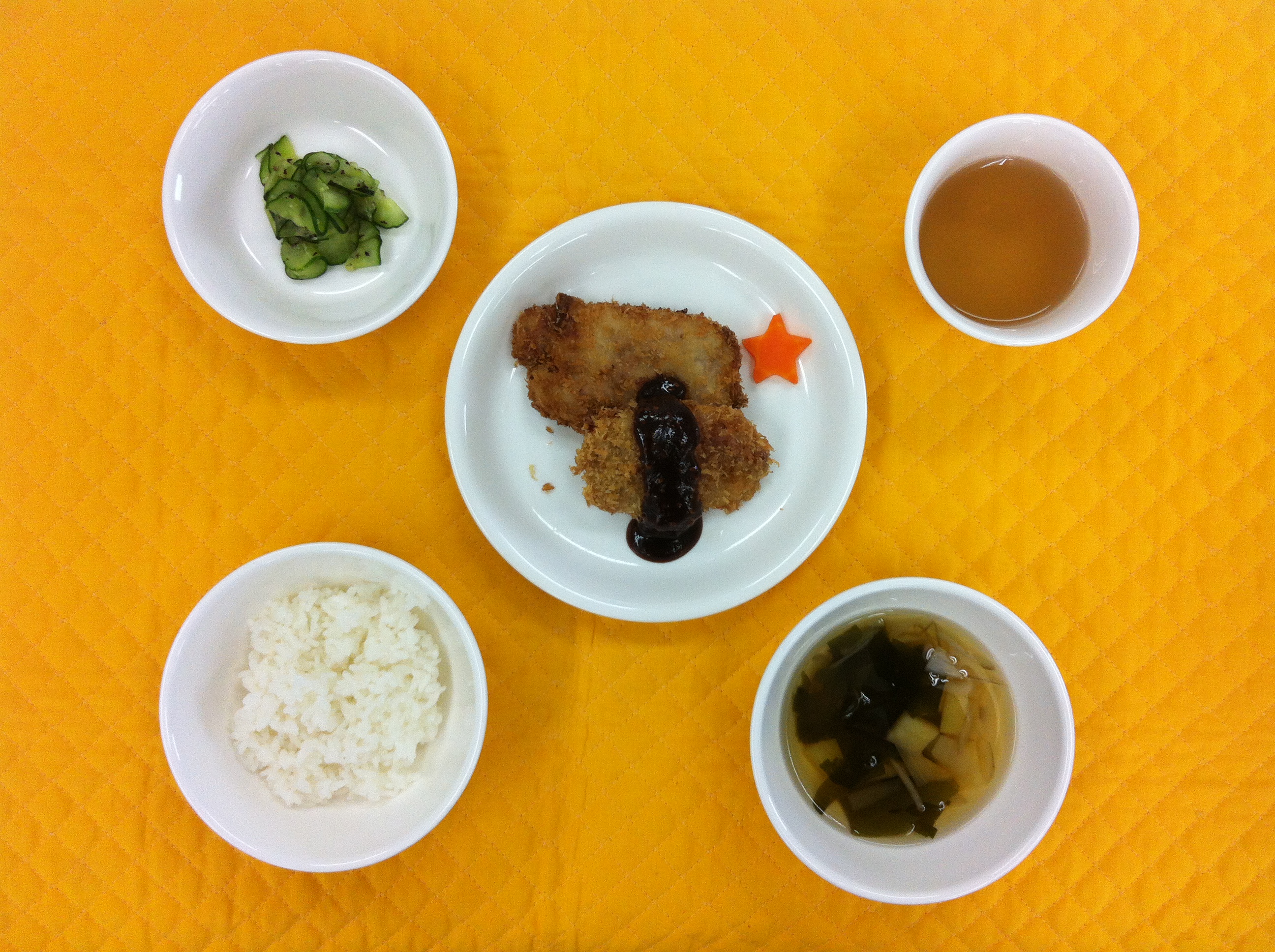 今日の給食は、味噌ヒレカツです。お肉をたたき、塩コショウをし、パン粉をつけカリッと揚げました。味噌だれは、赤味噌を使い手作りしました。ボリューム満点名古屋名物給食です。