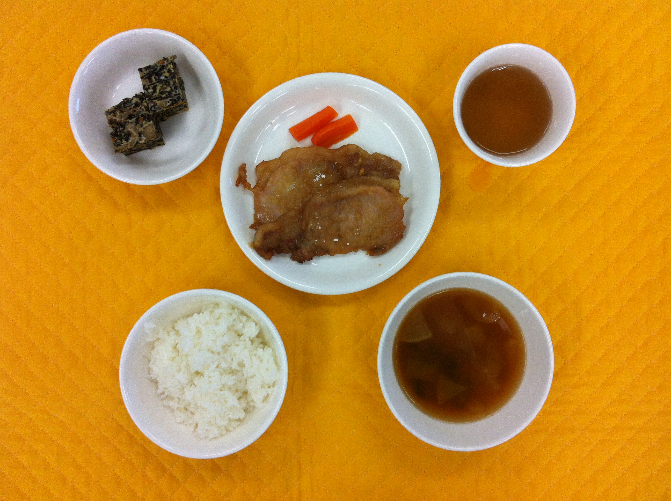 今日の給食は、豚の生姜焼きです。焼くと縮むので、包丁で脂身の所に切れ目を入れ、タレに付けて焼きました。子どもたちが食べやすいよう、甘めのタレを手作りしました。ひじきの卵焼きは、ひじき、人参、油揚げ、ねぎと具沢山です。オーブンでじっくり焼きました。