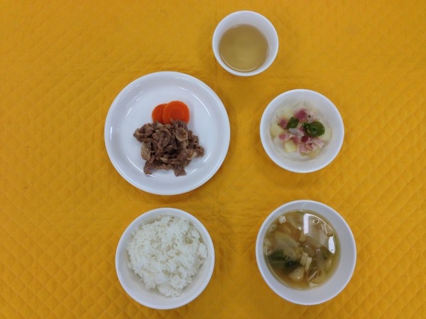 今日は、豚肉を照り焼きにしました。甘辛いタレに生姜をきかせてくさみを抜き、食べやすく作りました。また副菜にはm、じゃが芋を使ってあっさりと塩味に仕上げました。 |