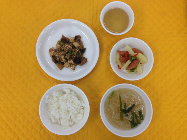 今日はマーボーなすです。なすだけではなく、お豆腐も入って子ども達が食べやすくなっています。 |